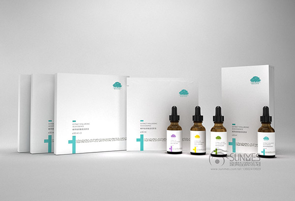 版式简约,采用医学“+”字与植物元素融合形成一个大“+”字,利用伸展与颜切分表现手法,使图形更具有想像空间,增强产品现代国际医学感,避免了与正统医学“+”字法规冲突,包装大面积白色,更突显产品医学纯净特征,植物元素,既是品牌的延伸,更传达了的品牌的天然、健康、安全、有效的品牌核心理念。